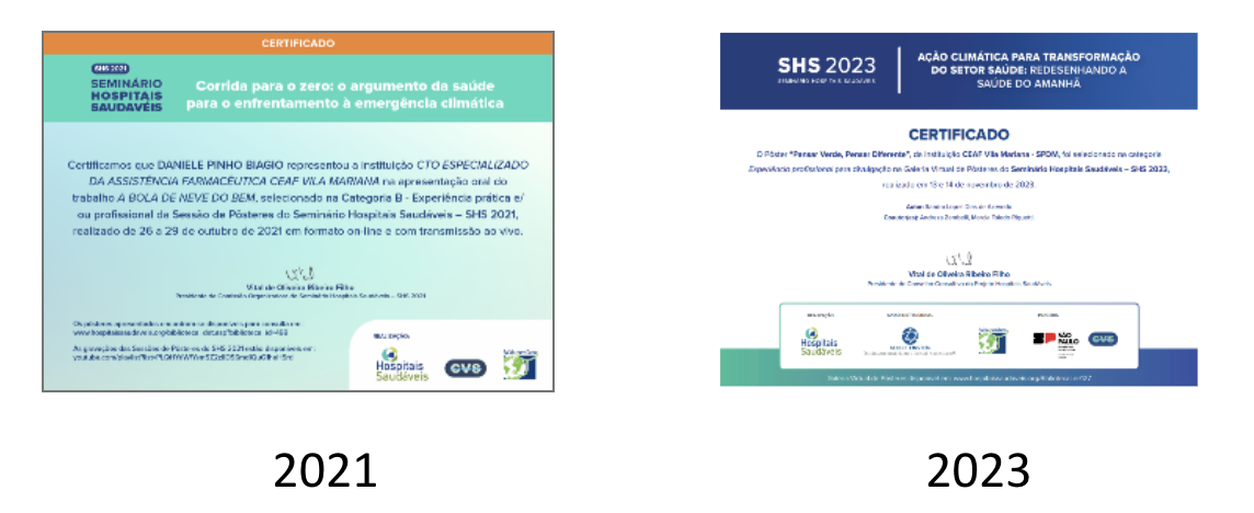 Pelo comprometimento com a Agenda Global de Hospitais Verdes e Saudáveis, as Unidades de Farmácia de Alto Custo foram reconhecidas com o Troféu de Membro Engajado em diversas edições.